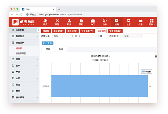 帮助销售人员管理从潜在客户,到销售项目跟进再到业务分析的全流程。
